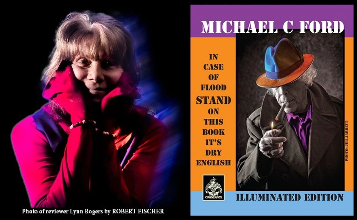 Dipping into the Illuminated Edition of Michael C. Ford’s work IN CASE OF FLOOD STAND ON THIS BOOK…IT’S DRY ENGLISH is like following a river of spilled wine, in and out of creative outpourings from this multitalented Beat poet, critic, jazz commentator, artist who now becomes a Legend.